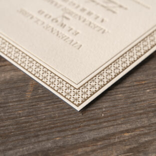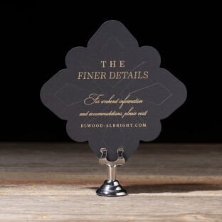 foil stamping: champagne matte + clear shine | fonts: ecatherina + loretta display | paper: dark blue 1-ply | card size: 5 x 5 (tier 1) | diecut style: bf-162