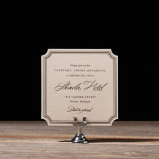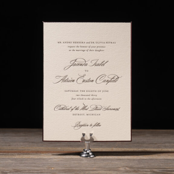 engraving: espresso | fonts: cormorant + dalgond script | paper: bella cotton 1-ply | card size: sq-5 (tier 1) | diecut syle: winston