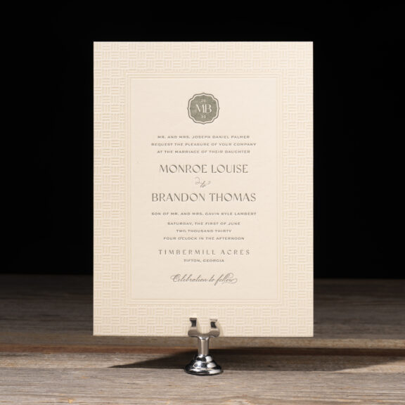 letterpress ink: cypress | fonts: sweet gothic regular + classico bold + diplomatic script | paper: bella smooth cotton ivory 1-ply | card size: a-6 (tier 2)