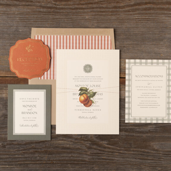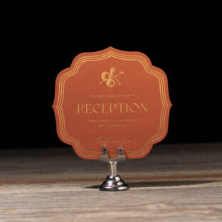 foil stamping: copper matte | fonts: sweet gothic regular + classico bold + diplomatic script | paper: mesa 1-ply | card size: 4.22 x 4.14 (tier 1) | diecut style: cd-73