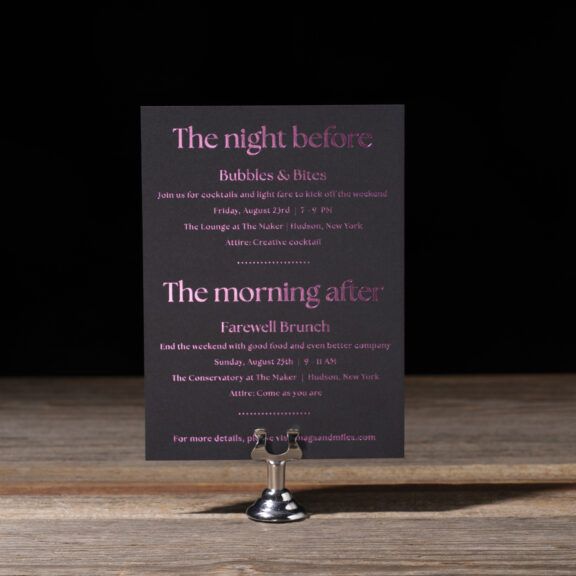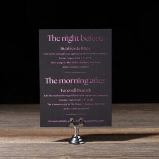 foil stamping: plum shine | font: the seasons | paper: dark blue 1-ply | card size: a-6 (tier 2)