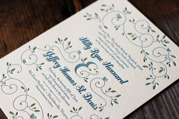 Showcasing our supremely lovely Hendrix design by Jessica Hische and printed in 3-color letterpress, these pretty and elegant letterpress invitations showcase our Mediterranean, chartreuse and pool inks on our ivory paper. Paired with a striking Mediterranean envelope liner, these invitations are perfectly inspired for a garden wedding celebration.
