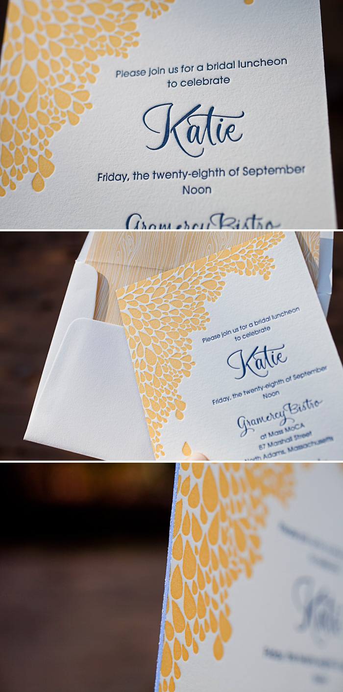 inks: champagne + navy | font: geometric block | calligraphy: Clermont hand calligraphy, by Debi Zeinert | paper: 2-ply white | invite size: f8 | edge painting: surf | liner: the natural woodgrain pattern in champagne | customization #: 15454 |