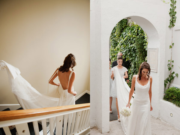 Claire and Brad’s gorgeous New Zealand wedding is one of those celebrations that is just beyond dreamy. Inspired by lace, elegance, English tea parties and summer, Claire planned a stunning vintage chic wedding with whimsical touches in a sophisticated color palette of white, cream and ivory with hints of soft powder blue. They chose our Cartoccio letterpress wedding invitations, printed in xanadu ink on our ivory cotton paper, to tie in with their chic and elegant affair. Claire wore a 1920s inspired dress from Phillipa Lepley Couture and the bridesmaids wore vintage style dresses from Whistles. The guys donned slim line powder blue suits that felt incredibly fashionable and only slightly like Las Vegas (in a good way). Claire and Brad met while attending university and Brad’s father officiated at their ceremony. A sweet love story paired with a neutral color palette and pretty vintage touches make this wedding an affair to remember.