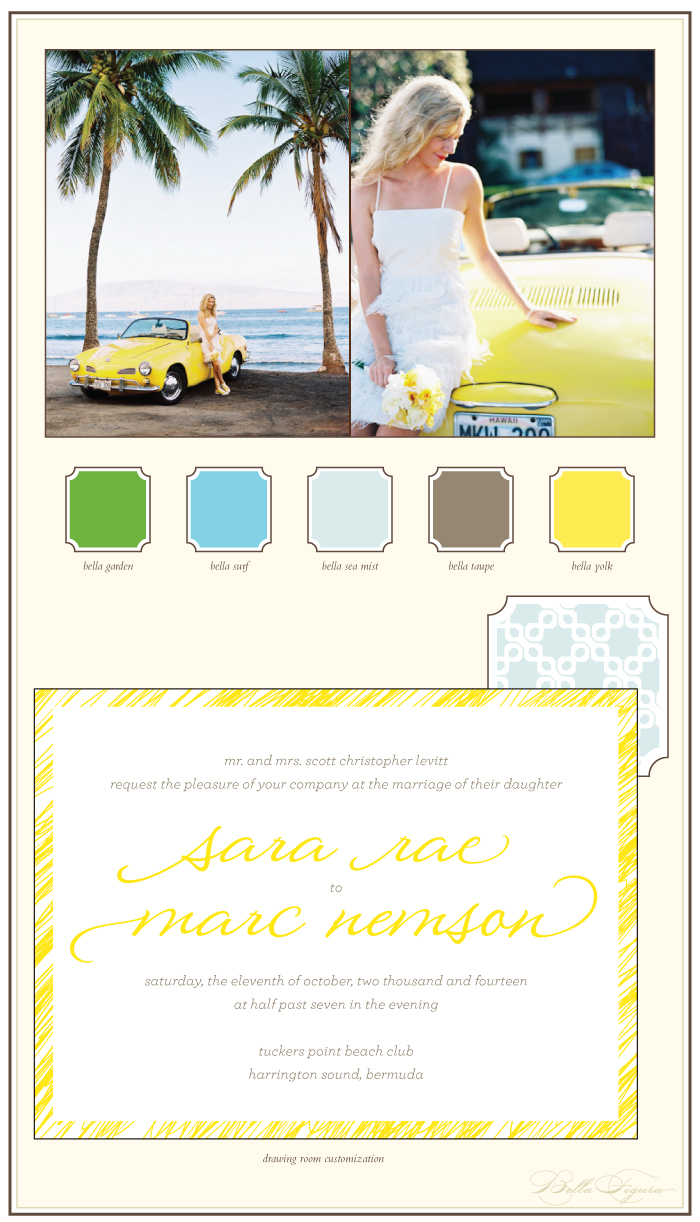 drawing room customization = inks: yolk + taupe | fonts: antoinette + herald | paper: white | invite size: f-8 | liner: elegant chainlink pattern in sea mist ink | original design and customization by in-house designer Sarah Walroth |