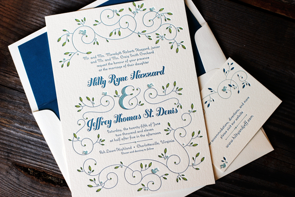Showcasing our supremely lovely Hendrix design by Jessica Hische and printed in 3-color letterpress, these pretty and elegant letterpress invitations showcase our Mediterranean, chartreuse and pool inks on our ivory paper. Paired with a striking Mediterranean envelope liner, these invitations are perfectly inspired for a garden wedding celebration.