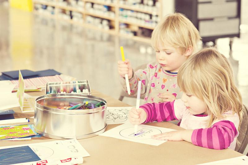 With the new year here, we wanted to show off a few photos from our recent open studio event, which took place a few weeks ago. We had the most fun introducing the local community to letterpress and showing off our print shop and new offices! We invited the local public, media, clients, vendors, friends, family and anyone with an interest or passion for printing and the arts to come pay us a visit. In return, we had printing demonstrations, tours, giveaways, an excess of sweets and goodies from a local bake shop and loads of letterpress fun. We decorated with DIY paper chain garlands for the Christmas tree and colorful paper bunting strung from the cross beams in our office, all of which were created from gift wrap from our sister company, Smock. Our friend and amazing wedding photographer Alice G. Patterson spent the day with us and captured these snippets from the day and her photos already have us excited for next year!
